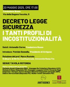Roma 20 maggio: “Decreto legge sicurezza. I tanti profili di incostituzionalità”