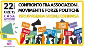 Salario Minimo, Reddito di Cittadinanza, Diritto all’Abitare, Accoglienza, No all’Autonomia Differenziata, Lotta alle mafie, Riconversione ecologica ad alta intensità di lavoro. Coprogrammazione e Coprogettazione come metodo per decidere e favorire una maggiore partecipazione dei cittadini e delle comunità sulle scelte legate agli investimenti del PNRR. Sono queste le proposte dell’Agenda Sociale sottoscritte da più di 700 realtà per rimettere al centro la lotta per sconfiggere disuguaglianze ed esclusione sociale.