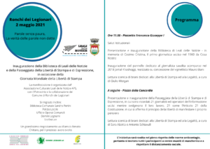 Il 3 maggio è la Giornata Mondiale della Libertà di Stampa, una ricorrenza molto importante per l’associazione culturale Leali delle Notizie di Ronchi dei Legionari che da anni organizza numerose iniziative per contrastare la censura dell’informazione e le minacce che ogni anno centinaia e centinaia di giornalisti sono costretti a subire perché svolgono il proprio mestiere raccontando le verità più scomode.