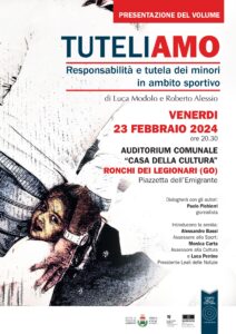 “Tuteliamo. Responsabilità e tutela dei minori in ambito sportivo” edito da L’Orto della Cultura. È questo il titolo del libro che, scritto da Luca Modolo e Roberto Alessio, verrà presentato venerdì 23 febbraio, alle 20.30, all’auditorium “Casa della cultura” di Ronchi dei Legionari.