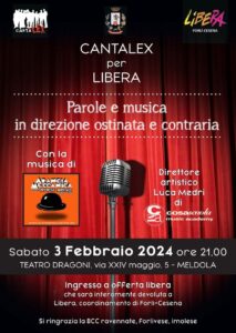 L’ingresso sarà ad offerta libera ed il ricavato interamente devoluto all’associazione Libera di Don Luigi Ciotti, coordinamento di Forlì-Cesena.