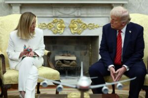Considerazione politica italiana: la premier non torna trionfante anche se così la rivenderà. Ma -va detto-, neppure sconfitta. Elogi sperticati di Donald Trump. Profilo basso di Giorgia Meloni, ma finalizzato a incassare un risultato che forse era già pre-concordato. Non c’è il clima ostico degli incontri con Macron e Starmer.