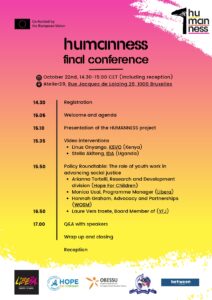 Il 22 ottobre, l’Organising Bureau of European School Student Unions (OBESSU), rete europea di rappresentanza studentesca, ha riunito a Bruxelles i partner del progetto Humanness, insieme a stakeholder e policy-maker nel campo dell’animazione giovanile, delle iniziative di solidarietà e della partecipazione giovanile, per la conferenza conclusiva: The Role of Youth Work in Advancing Social Justice.