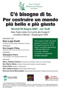 Giovedì 29 giugno 2023 alle ore 10,30 appuntamento nella Sala-Teatro della Comunità Alle Sorgenti, Località Is Benas, in Comune di Morgongiori.