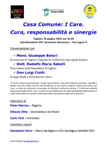 Mons. Giuseppe Baturi, Arcivescovo di Cagliari e Segretario Conferenza Episcopale Italiana, Dott. Rodolfo Maria Sabelli, Procuratore della Repubblica di Cagliari e Don Luigi Ciotti, fondatore Gruppo Abele e Associazione Libera, converseranno sulla Casa Comune da curare e tutelare con responsabilità individuale e collettiva, creando occasioni e sinergie di contrasto ad ogni tentativo di aggressione.