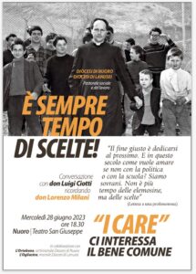 È su questi presupposti che la Diocesi di Nuoro e Lanusei, per volere del Vescovo Mons. Antonello Mura, ospiterà Don Luigi Ciotti a Nuoro mercoledì 28 giugno 2023 alle ore 18,30 presso il Teatro San Giuseppe. L’iniziativa è promossa dall’Ufficio di Pastorale Sociale e del Lavoro della Diocesi di Nuoro e della Diocesi di Lanusei.