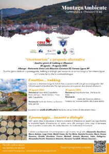 Quest’anno Casacomune propone, per chi non ama i luoghi molto affollati, quattro giorni di trekking e riflessioni sul tema dell’overtourism, per riscoprire un antico borgo, Varese Ligure in provincia di La Spezia, l’entroterra ligure e il turismo lento che lo contraddistingue.