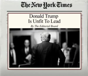 È un pericolo per la democrazia ha scritto in un breve editoriale il New York Times schierandosi con Kamala Harris.