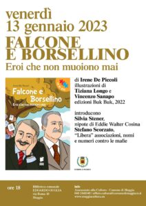 Venerdì 13 gennaio alle ore 18 alla Biblioteca Comunale “Edoardo Guglia” presentazione del libro “Falcone e Borsellino, eroi che non muoiono mai” (Ed. Buk Buk) di Irene De Piccoli.