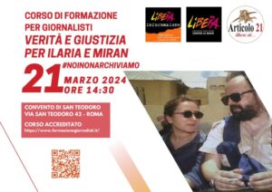 Giovedì 21 marzo dalle ore 14.30 alle ore 17 a Roma – presso il il Convento di San Teodoro, via San Teodoro 42 – dunque appuntamento di approfondimento e riflessione che accoglierà anche le testimonianze delle famiglie Regeni, Paciolla, Rocchelli, Toni per continuare a tenere accesi i riflettori su storie di giornalisti che sono morti senza avere il diritto di una ricostruzione fedele, anzi la ricerca della verità è stata piena di ostacoli e di troppe omissioni.