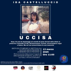 Per questo motivo vi invitiamo a partecipare al SIT IN che si terrà giovedì 13 marzo alle 11.00 presso il sagrato della Cattedrale, davanti il suo liceo Vittorio Emanuele II, la scuola frequentata da Ida.