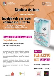 In occasione della Giornata della memoria e dell’impegno in ricordo delle vittime innocenti delle mafie, il Comune di Preganziol ha organizzato martedì 19 marzo dalle 20.30 alle 22.30 presso la Sala Consiliare la presentazione del libro “Incolpevoli per aver commesso il fatto. Storia di Cristina Pavesi, vittima della mafia del Brenta” (Panda Edizioni) di Michela Pavesi e Gianluca Ascione.