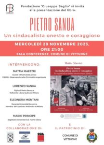 Intervengono l’autore del libro Mattia Maestri, Lorenzo Sanua, figlio di Pietro, Eleonora Montani, docente dell’Università Bocconi e presidente della Fondazione “Giuseppe Baglio” e Mario Principe, segretario generale della Cgil Ticino – Olona.