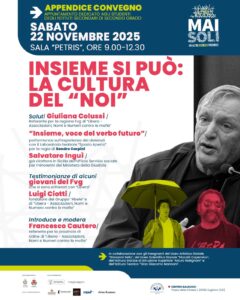 Alle ore 9, su “Insieme si può: la cultura del noi”, dedicato a circa 400 studenti degli Istituti secondari di secondo grado di Udine.